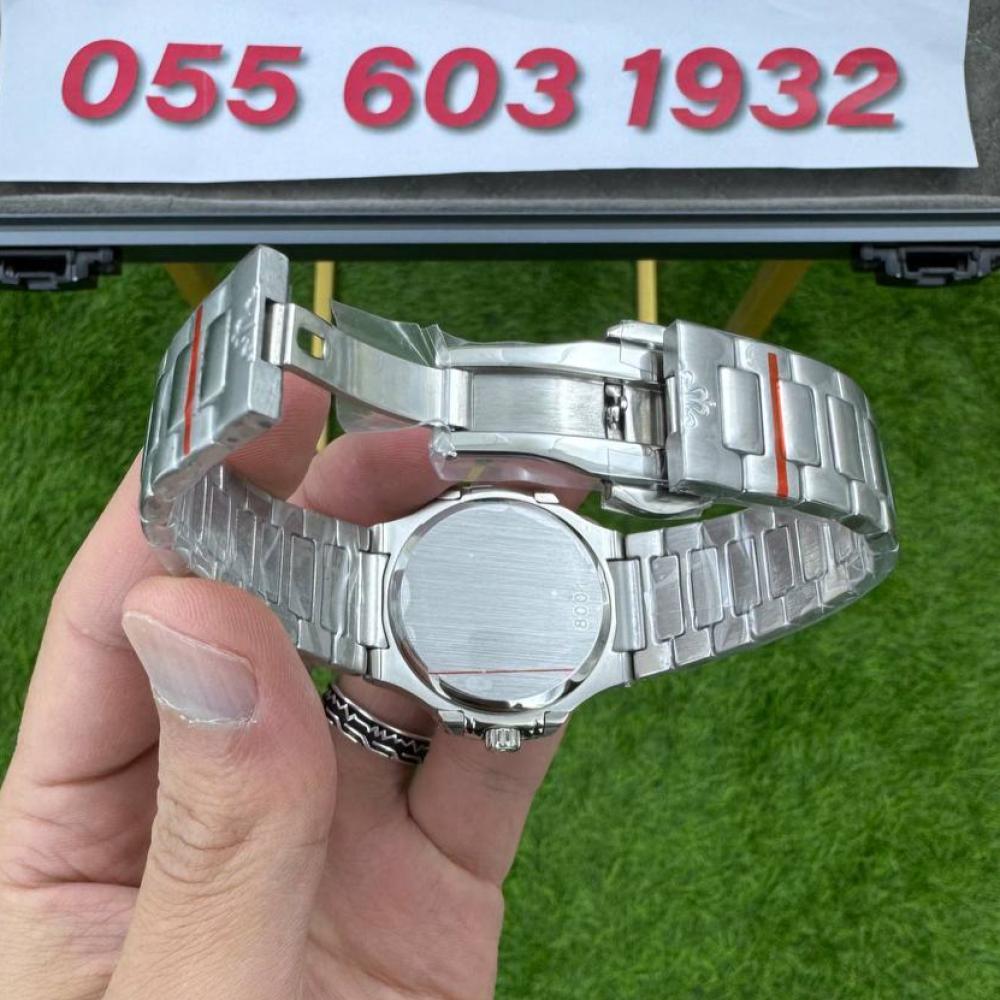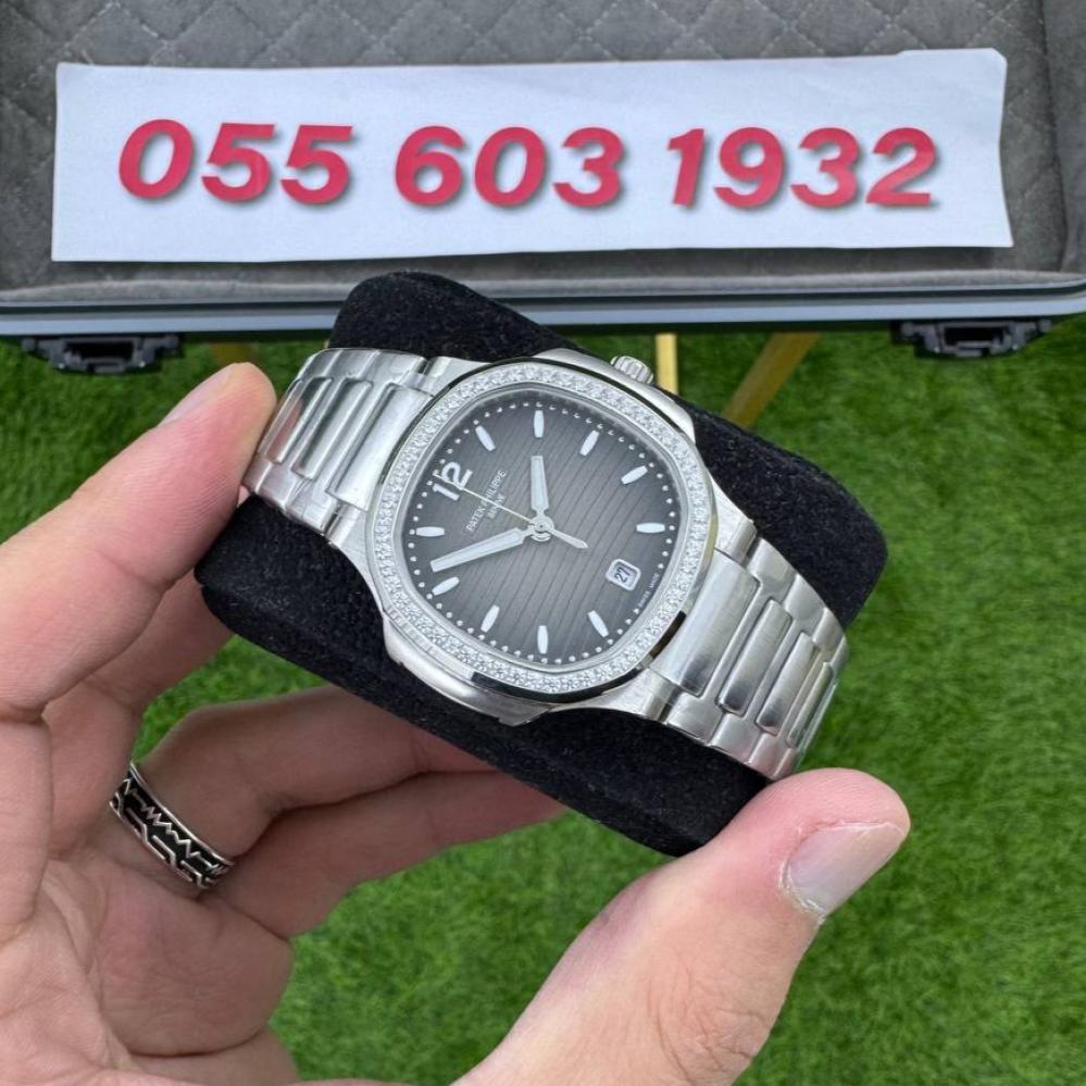 - ساعة باتك فيليب نوتيلوس النسائية بمقاس 35 مم تجمع بين التصميم العصري والتفاصيل الكلاسيكية التي تميز العلامة التجارية الشهيرة. تتميز بميناء رمادي أنيق يعكس الضوء بنعومة، مع سوار معدني مصمم بدقة ليوفر الراحة والأناقة في آنٍ واحد.