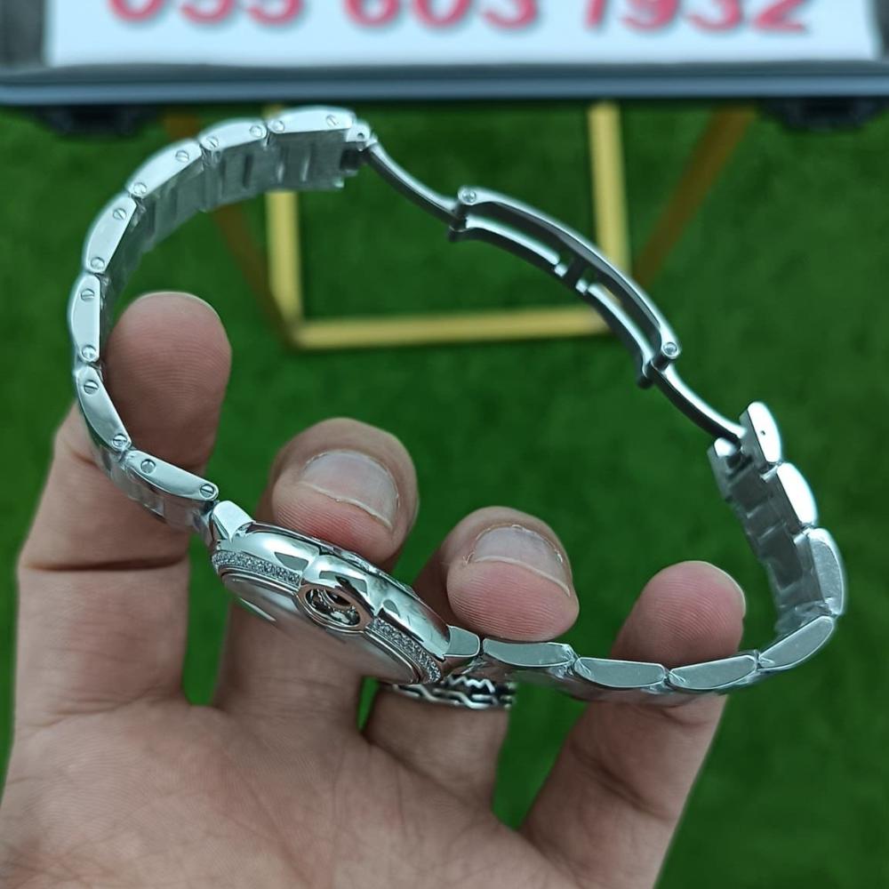 تصميمها ناعم وأنثوي، والإطار مرصّع بفصوص لامعة تعطيها حضور يخطف الأنظار. خامتها ثقيلة وفخمة، والماكينة أوتوماتيك بدقة عالية. تناسب اللبس اليومي والمناسبات، وتفاصيلها مطابقة للأصل بدرجة ماستر.