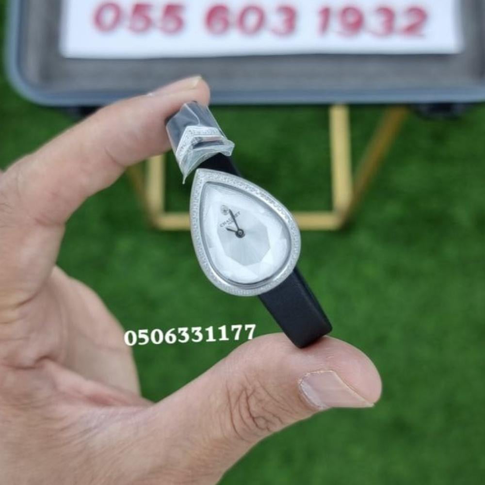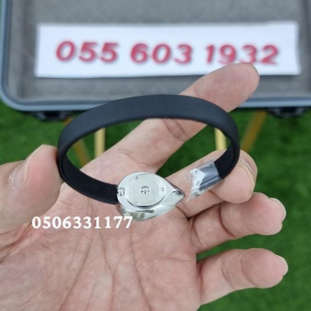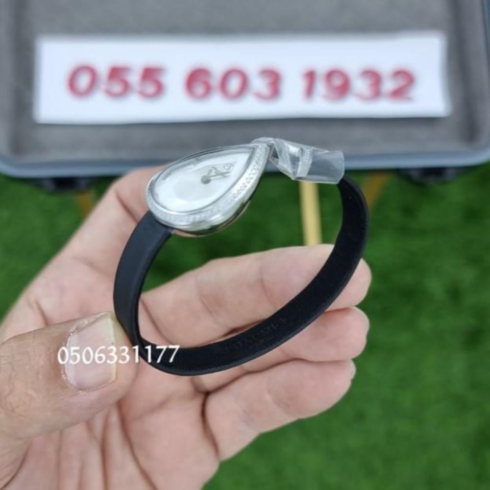 السوار جاي باللون الأسود من الجلد ، أنيق وخفيف على اليد. تصميم الساعة ملفت ورقيق، وفعلاً يناسب اللي يحبون الذوق الناعم الفخم.