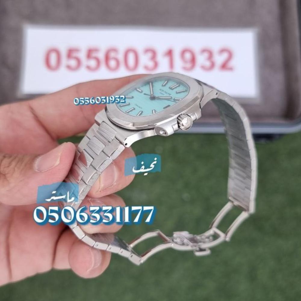 ساعة باتيك فيليب نوتيلوس تجمع بين الفخامة والأناقة بفضل تصميمها المميز واللون التيفاني النادر الذي يزين مينا الساعة. صُنع السوار والعلبة من الفولاذ المقاوم للصدأ، مما يجعلها مناسبة للاستخدام اليومي والمناسبات الخاصة. توفر علامات الساعة المضيئة سهولة قراءة الوقت حتى في ظروف الإضاءة المنخفضة، بينما تضيف نافذة عرض التاريخ لمسة عملية للتصميم الأنيق. تتميز الساعة بحركة أوتوماتيكية مع غطاء خلفي شفاف، يعكس تفاصيل الآلية الدقيقة ويعزز من جاذبيتها الحرفية.