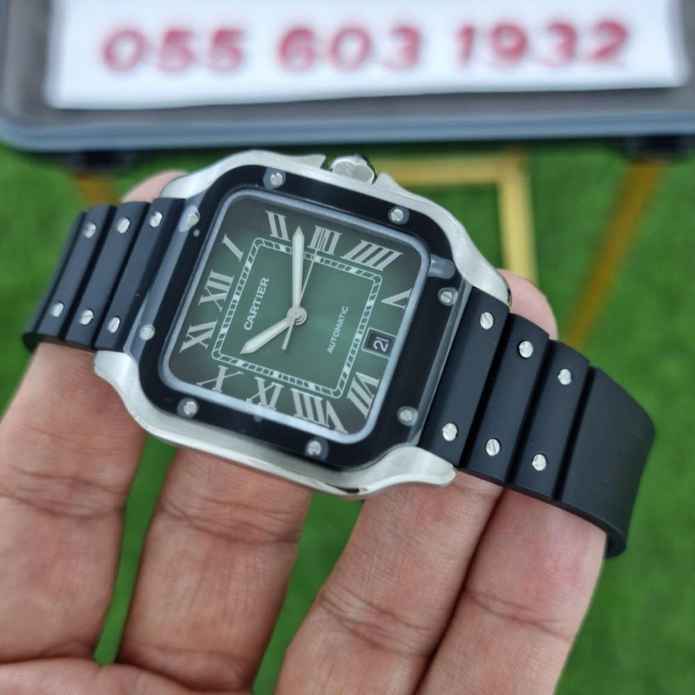 هذي كارتييه سانتوس خضراء تجي بتصميم راقي يخطف الأنظار، بإطار ستانلس لمّاع وميناء أخضر أنيق يعطيها حضور مميز جدًا ✨