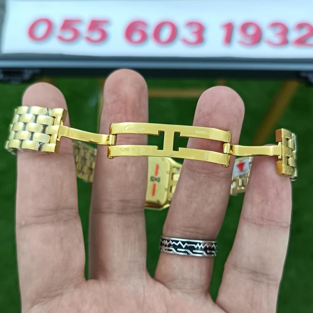 The Cartier Master Quality women's watch is a timeless yet elegant design. Featuring a square frame with soft corners, it exudes unparalleled elegance. The white dial with black Roman numerals gives it a classic feel, while the blue hands add a touch of striking contrast. The stainless steel case accentuates the gold tone and enhances its durability.