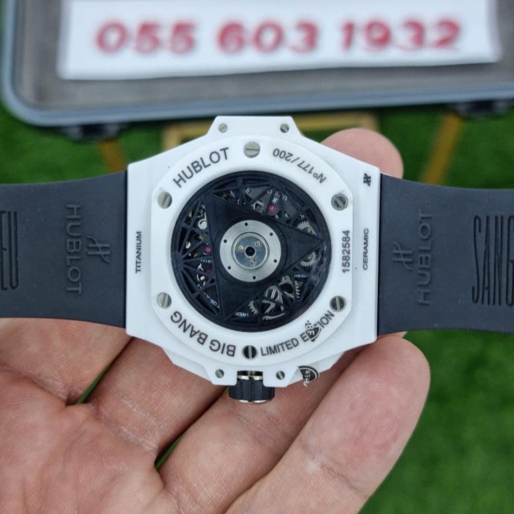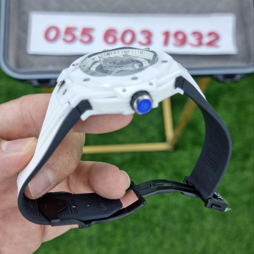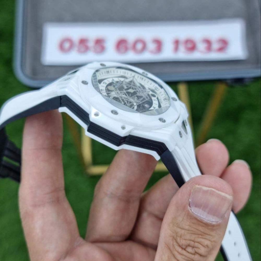 إذا تبي ساعة توقف معها كل الأنظار، خذ لك هوبلت الأبيض السيراميك هذي! تصميمها جريء ومميز، مقاس 45 يعطي فخامة وهيبة بيدك، واللي يميزها إن شكلها غير عن الساعات التقليدية.