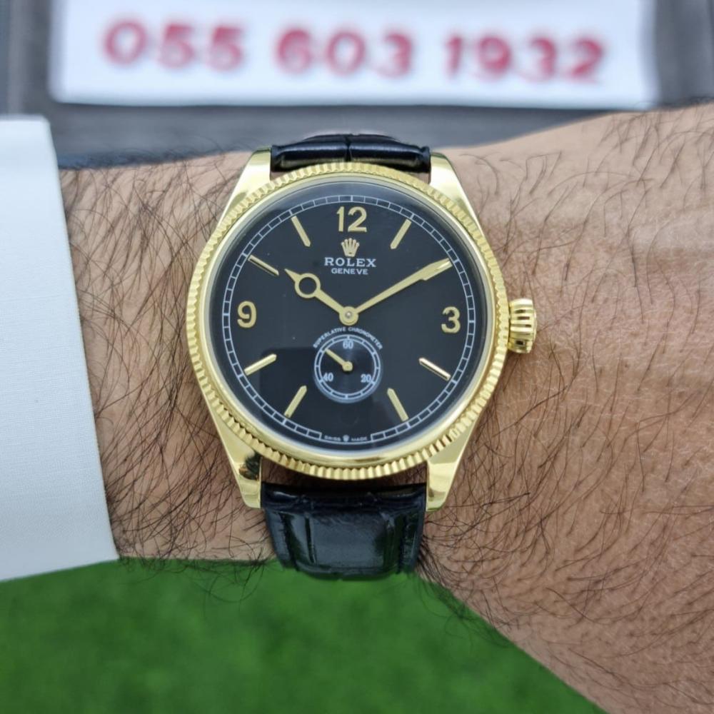 للرجال اللي يعشقون الفخامة الكلاسيكية ✨ ساعة رولكس 1908 الذهبية تجمع بين الأناقة والهيبة، بمقاس 39 مثالي لكل معصم. المينا الأسود يعطيها طابع راقي والإطار الذهبي يضيف لمسة فخمة تخطف الأنظار 🔥. سوار الجلد الفاخر يعطي راحة وأناقة بكل لبسة. جودة عالية وتقليد درجة أولى يخليك تلبسها بثقة.